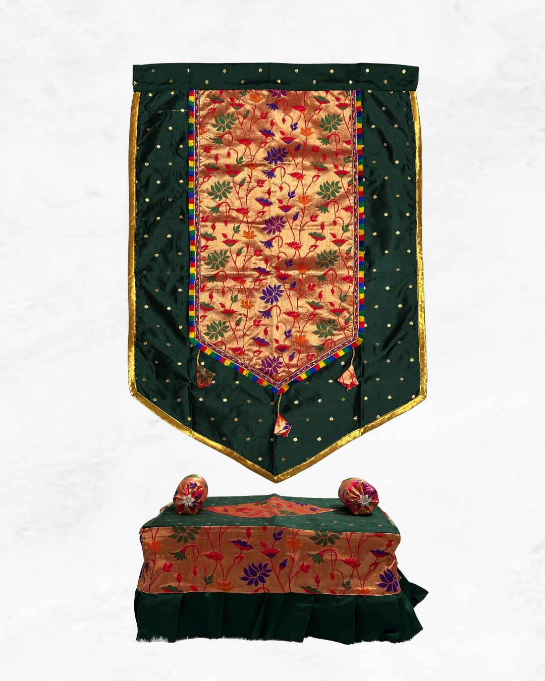 Paithani Backdrop & Chaurang Cover Combo – A Complete Traditional Setup for Your Sacred Celebrations