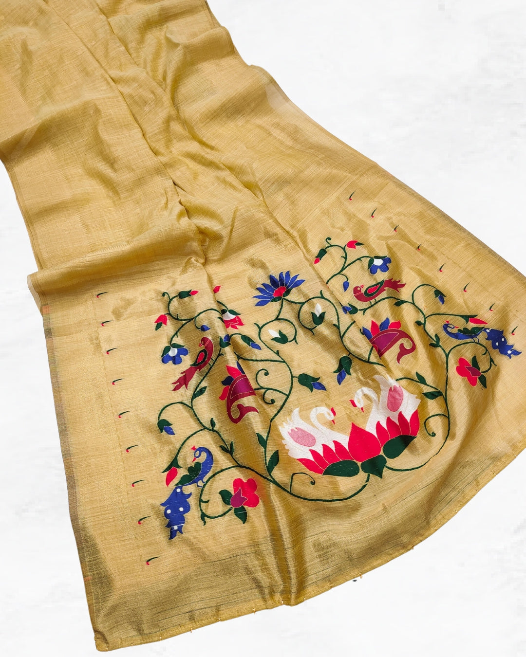 Soft Muga Cotton Paithani Saree - Handwoven Lightweight Festive Saree